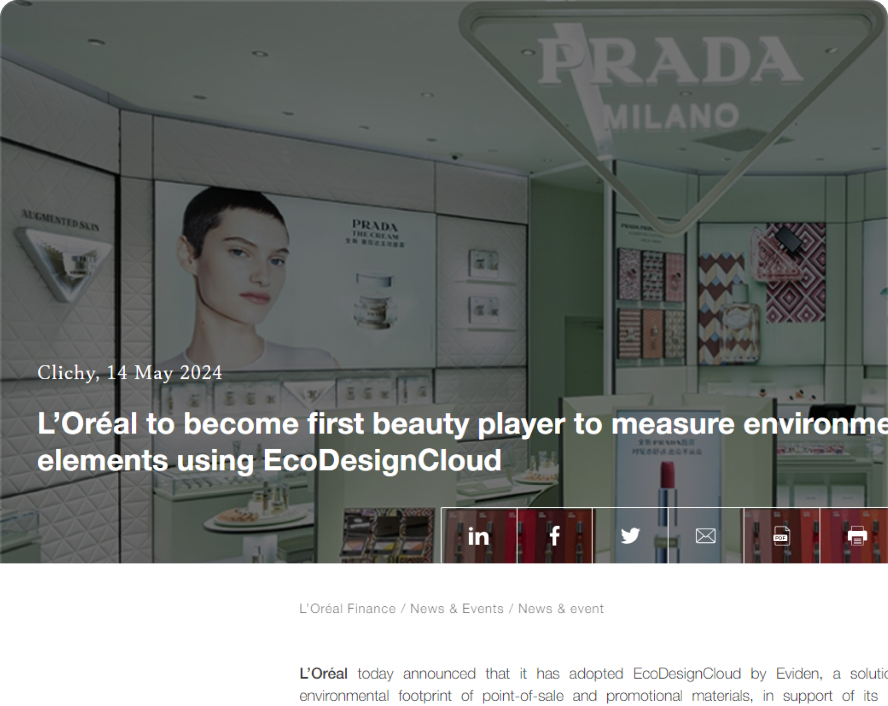 "EcoDesignCloud helps improve the environmental footprint of retail elements by providing in-depth scoring and simulations for L’Oréal and its suppliers"...allowing users to identify and select retail and promotional items with the lowest environmental impact. Early assessments have already helped conceive more ecologically designed luxury displays as well as gifts-with-purchase..."