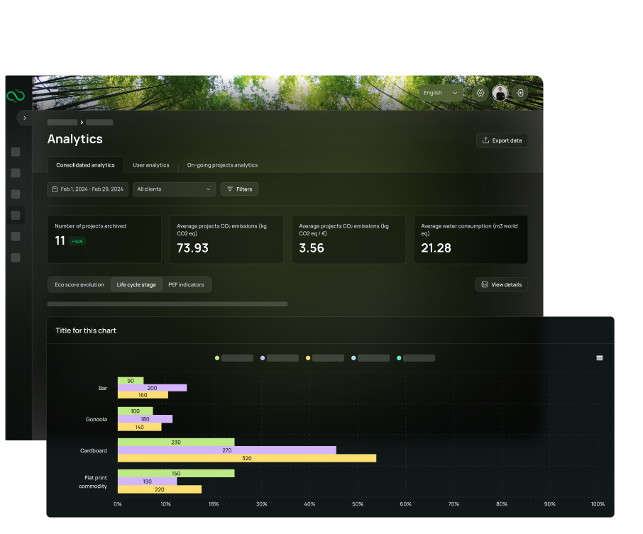 Using streamlined workflows with your ecosystem, EcoDesignCloud centralizes all your company's footprints and makes all your ecosystem emissions available in your sustainability dashboard, and scaled with precise metrics to enable your teams to monitor your value chain performance.
