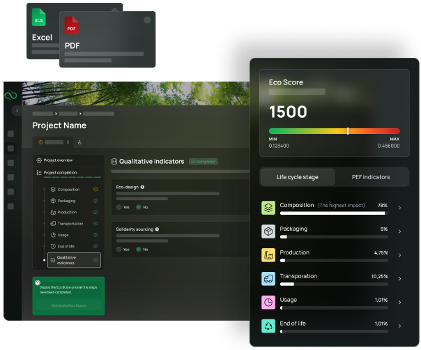 - Download LCA reports - Eco Score Report (PDF and XLS formats)